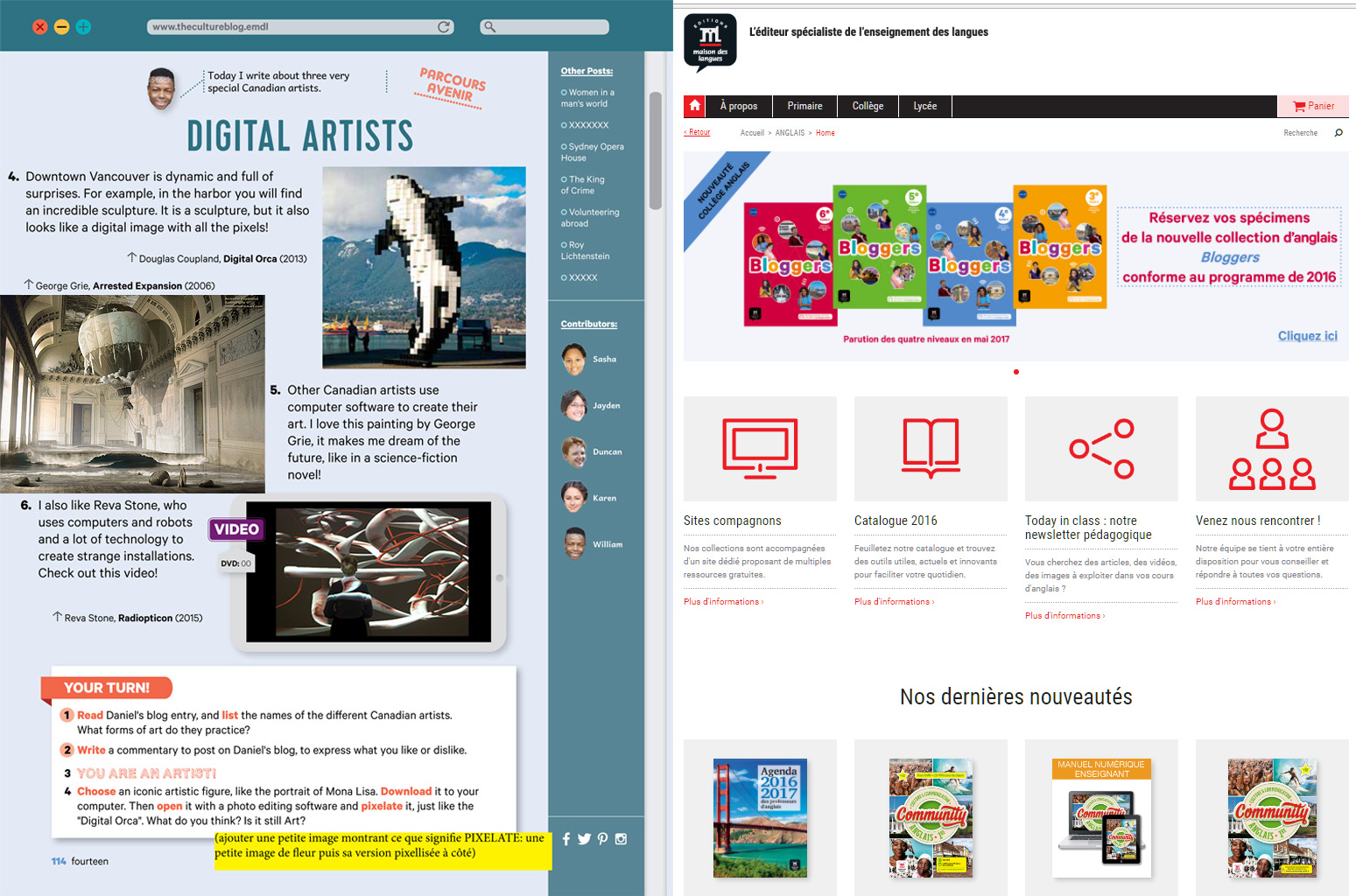 Bloggers 5ème, School Textbook, France2017, French scholastic publishing house DIFUSION-EMDL, specialized in educational material based in Paris. Arrested Expansion artwork featured in textbook entitled - Bloggers 5eme. This book is created for high school French students (7th grade); a cultural page about digital artists to talk about culture in the future and innovative arts. |