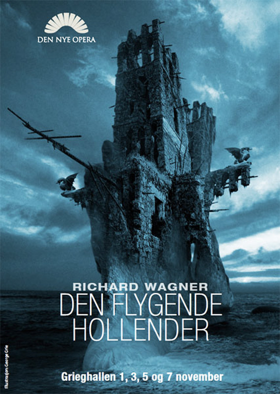 Den Nye Opera - Den Flygende Hollender, Norway2009. The Flying Dutchman work has been used as a poster and gigantic premier banner by the Bergen National Opera house. Den Flygende Hollender - Flying Dutchman is an opera, with music and libretto by Richard Wagner. According to Wagner the legend among sailors of a ghost ship with a Dutch skipper who is doomed to sail aimlessly on the high seas. |