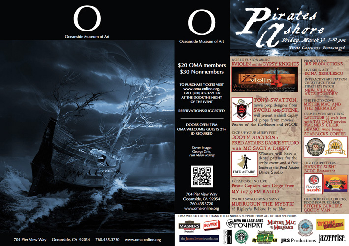 Oceanside Museum of Art, After Dark exhibition, USA2012 March. "Chasing the light " work, exhibition Inspired by the nautical scenery Ghost Fleet, OMA creates a pirate town filled with visual treasures. Museum of Art (OMA) mission is to educate and inspire the public through a diverse range of exhibitions that connect people with national and global artists and art forms of the 20th and 21st centuries. |