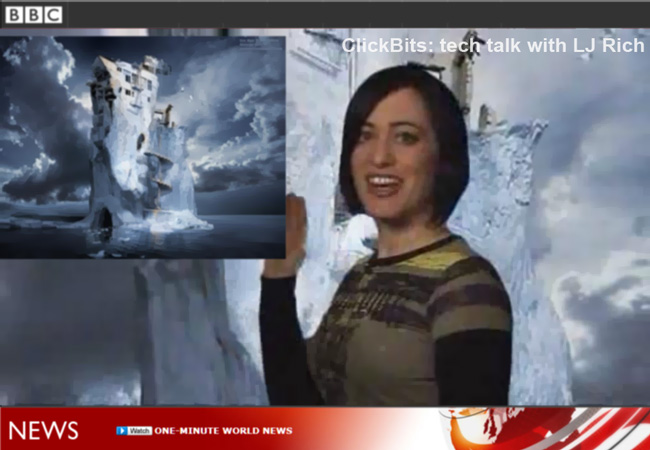 BBC News TV, UK2010 January. The number of George Grie's artworks have been featured in, ClickBits: tech talk with LJ Rich. 'Clickbits' is a short online technology roundup used both on BBC News Online and the News TV channel. Program is a log of stories, websites and digital art on the BBC's mini webcast as well. BBC videoclip: http://news.bbc.co.uk/go/em/fr/-/2/hi/technology/8488344.stm |